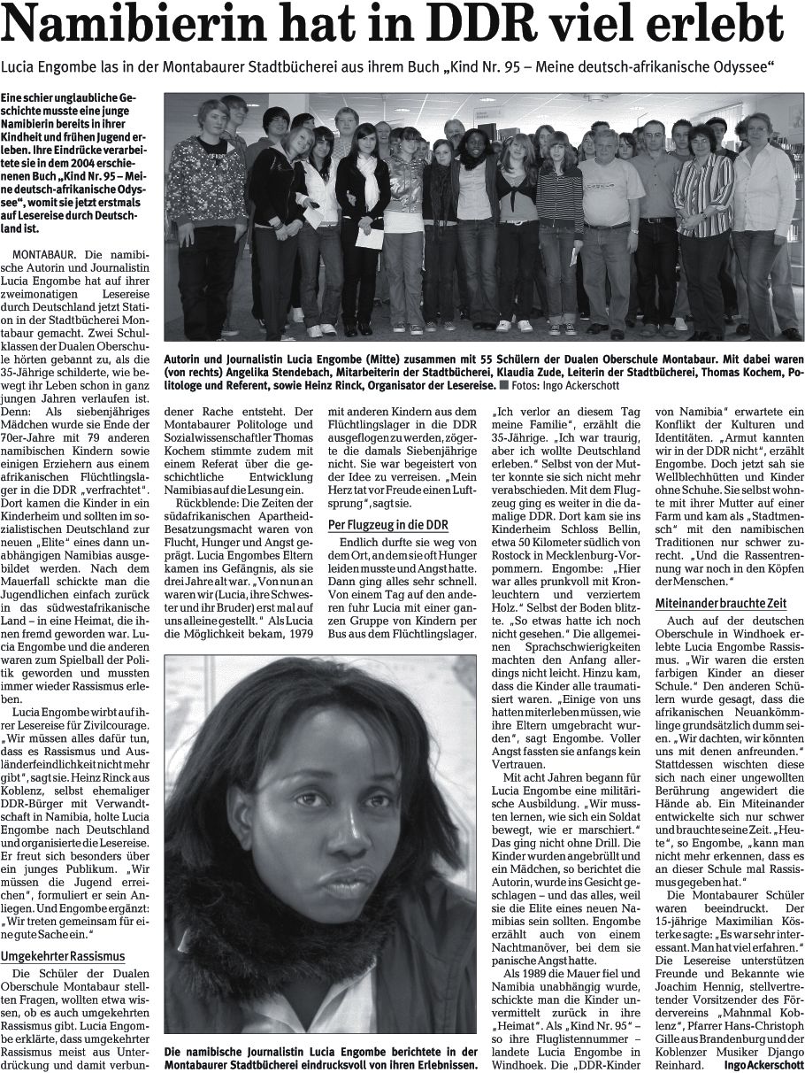 Lucia Engombe las in der Montabaurer Stadtbücherei aus ihrem Buch „Kind Nr. 95 – Meine deutsch-afrikanische Odyssee"